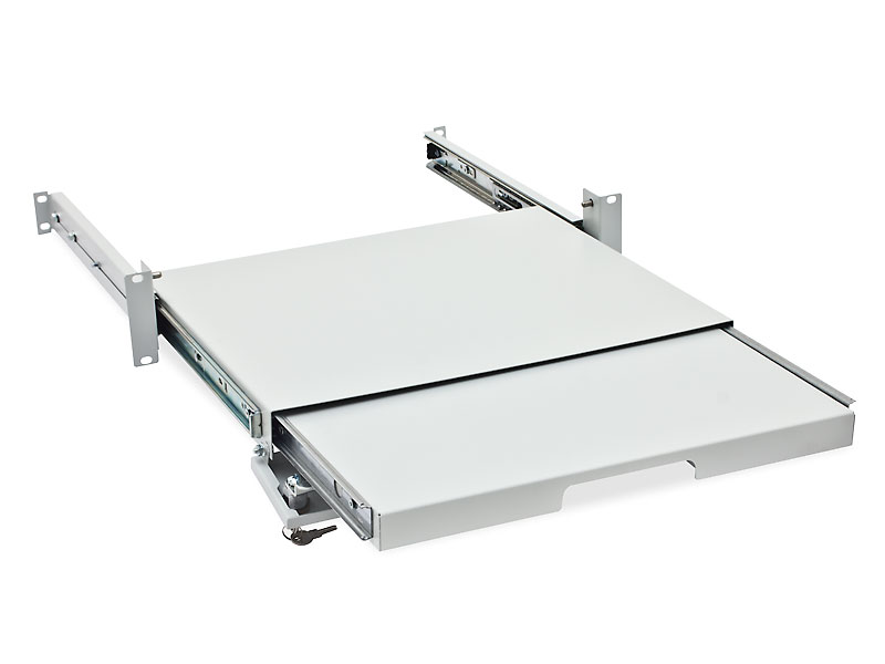 Triton, RAB-UP-X29-A1 Výsuvná uzamykatelná 19´´ police 2U pro klávesnici a myš, uzamykatelná, hloubka zasunuté police je 371,5 mm Příbal: montážní materiálbarva: černáilustrační obrázekVíce info