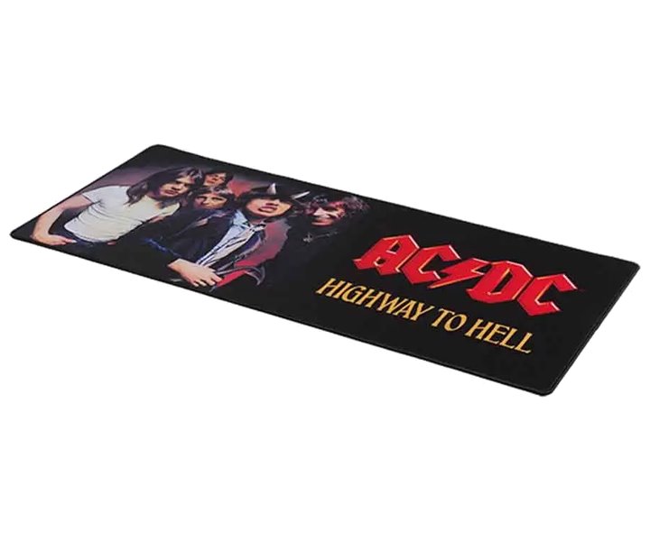 Základem je přírodní kaučuk, který zajišťuje perfektní přilnavost spodní strany na každém povrchu. Díky tomu nedochází k nechtěnému sklouznutí nebo posunu ani během intenzivních virtuálních bitev. Okraje jsou opatřeny pevnými švy, díky kterým se podložka netřepí a zůstane jako nová po dlouhou dobu používání. Na podložce je detailně vyobrazen motiv kapely s ikonickým obalem alba Highway to Hell, které zná nazpaměť každý fanoušek.