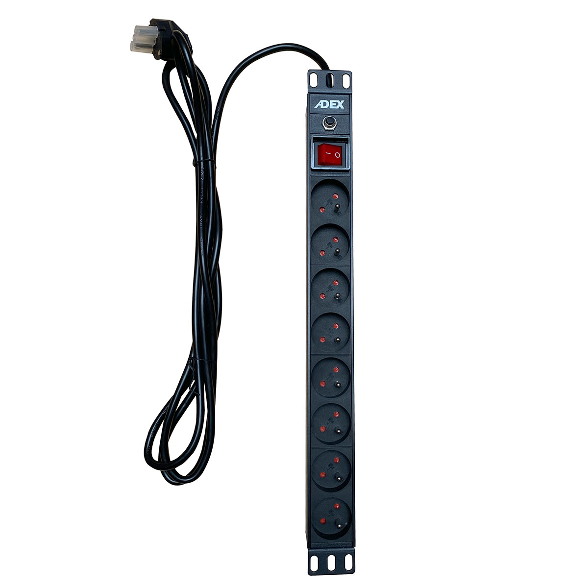 19" rozvodný panel Adex 8x230V-3m černý; Rozvodný panel je plně univerzální, tj. použitelný pro všechny typy 19" rozvaděčů. Konstrukce rozvodného panelu: - výška 1,5U - přepěťová ochrana; - 8 x 230V zásuvek - přívodní šňůra 3m; - barva černá; Rozvodný ...Více info