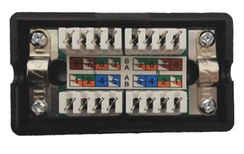 Kvalitní nestíněná spojka Adex kategorie 5 pro spojení dvou UTP kabelů pomocí zářezového pole. Zářezové pole LSA s osmi možnostmi zapojení pinů.Více info