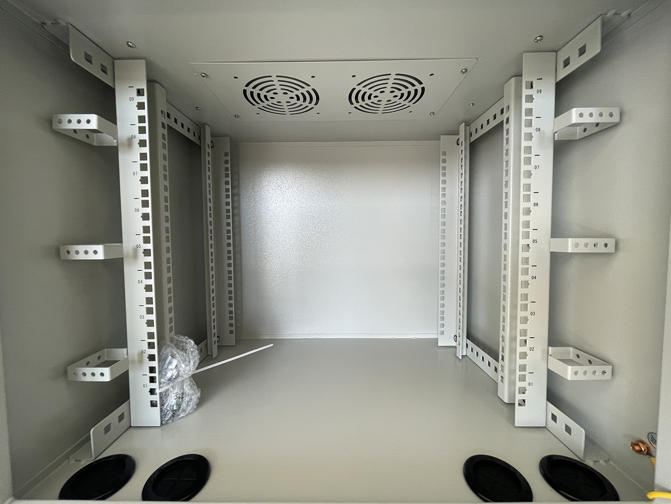 K racku je možné dokoupit další Adex příslušenství—police, ventilátor, patch panel, rozvodný panel atd.