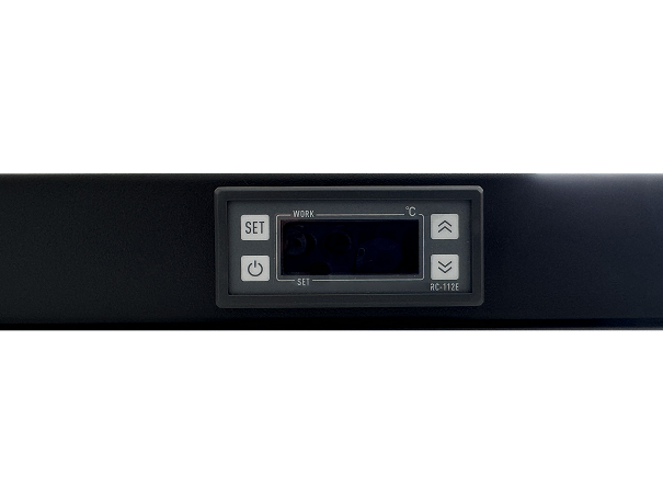 Adex ventilační jednotka s termočidlem. Na displeji jednoduše nastavíte teplotu a jednotka se již postará o větrání racku v případě potřeby.