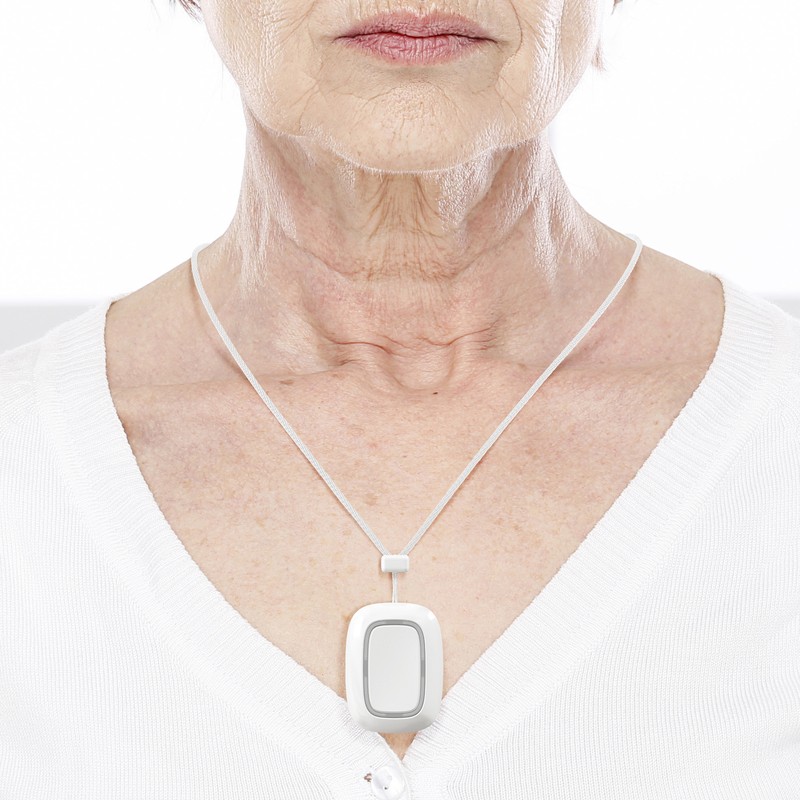 Bezdrátové tísňové tlačítko s ochranou proti náhodné aktivaci. Z předinstalované baterie je napájeno až po dobu 5 let.