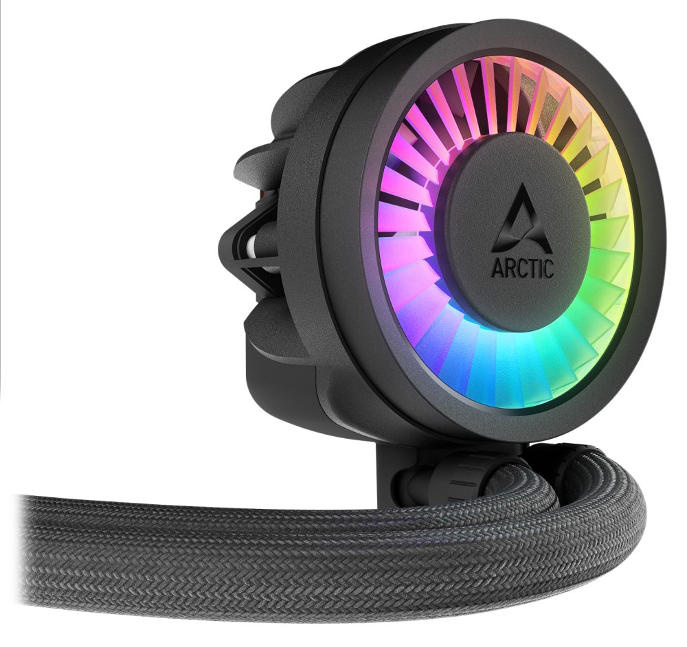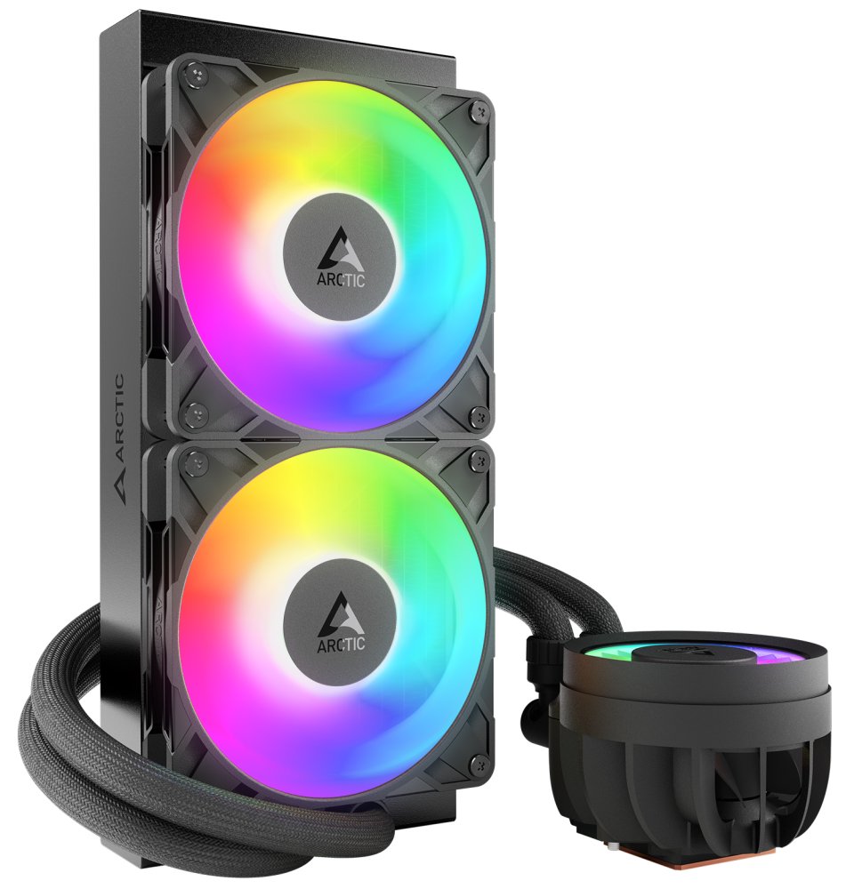 Vodní chladič určený pro chlazení procesoru. Vyznačuje se vysokou kvalitou, výkonem a spolehlivostí. Vybaven je dvěma 120mm ventilátory ARCTIC P12 Pro A-RGB, které disponují kvalitními FDB ložisky zajišťujícími dlouhotrvající bezproblémový chod. Odolné opletené hadice jsou dlouhé 450 mm a díky dostatečně širokému průměru zaručují plynulý průtok chladicí kapaliny.