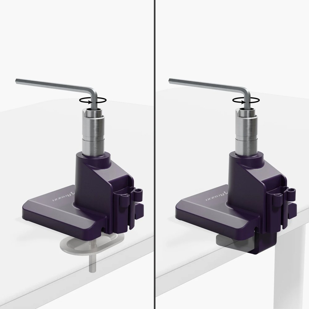 Odnímatelné VESA desky usnadňují instalaci monitoru. Integrovaný systém pro vedení kabelů bez nutnosti použití nástrojů pomáhá udržet vaše pracoviště čisté a organizované. Držák nabízí dvě možnosti montáže – pomocí C-svorky nebo průchodky, které jsou obě součástí balení.