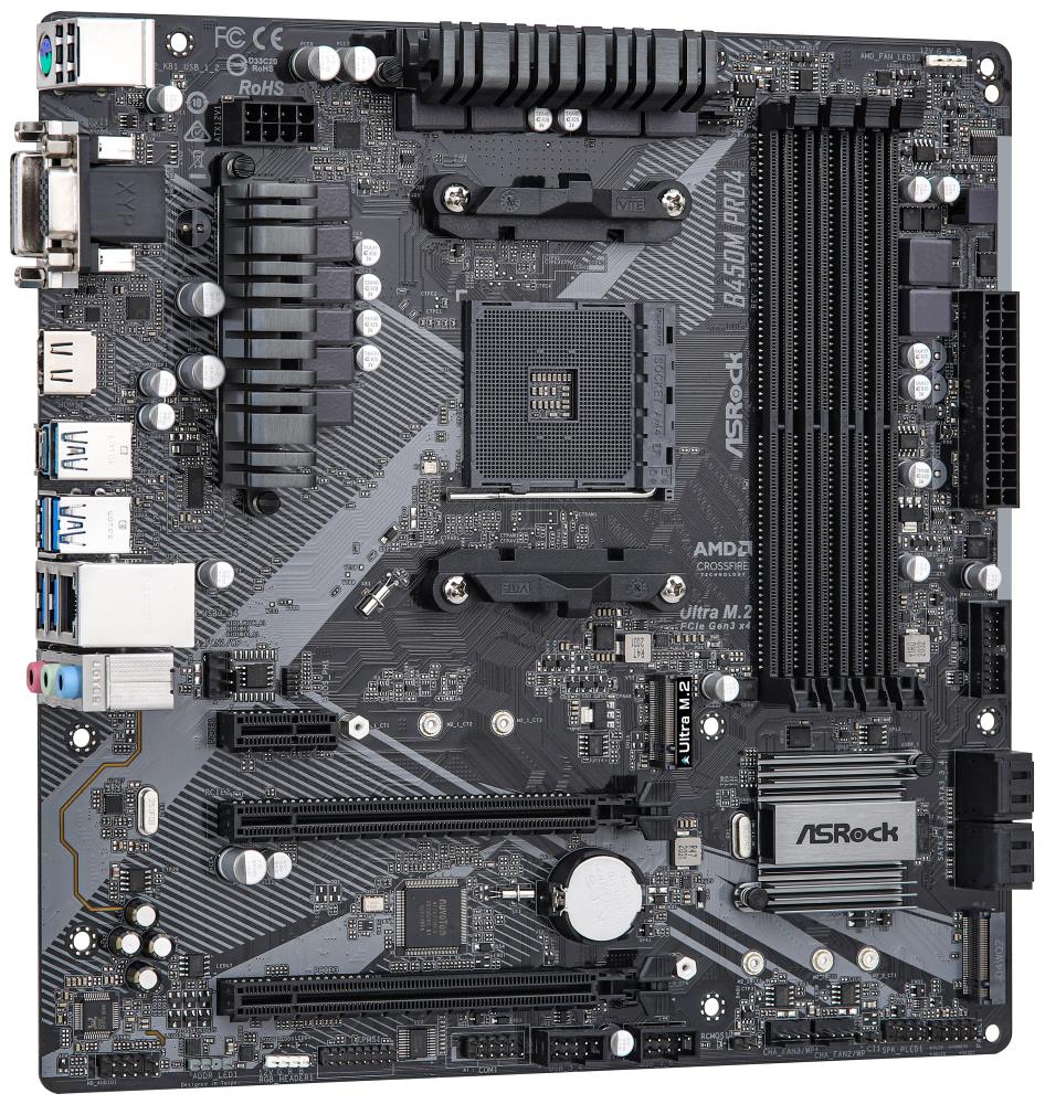 (Registrace)ASRock B450M PRO4 R2.0 / AMD B450 / AM4 / 4x DDR4 DIMM / HDMI / DVI-D / VGA / M.2 / USB-C / mATX
