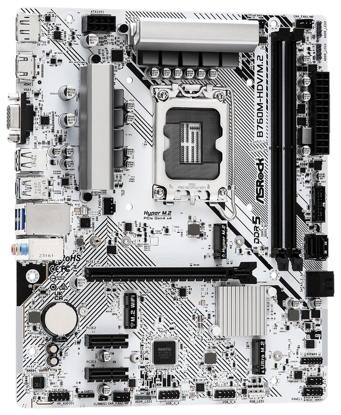 Základní deska ASRock B760M-HDV/M.2 je vybavena dvojicí slotů pro nejnovější operační paměť typu DDR5 s maximální kapacitou 96 GB, nechybí trojice těch nejpoužívanějších grafických výstupů pro flexibilní nebo vícenásobné připojení zdroje obrazu.