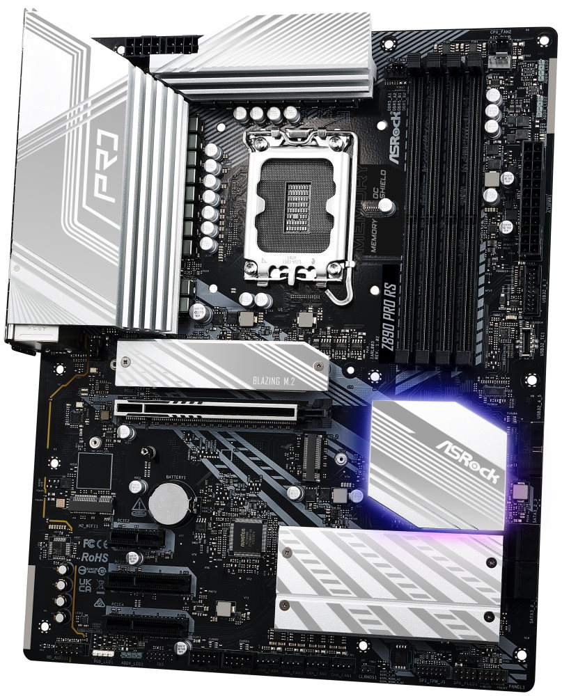 Rozhraní Blazing M.2 s rozhraním PCI Express 5.0 podporuje dvojnásobnou šířku pásma oproti předchozí generaci a umožňuje nekompromisní chod vysokorychlostních SSD jednotek. Samozřejmostí je podpora paměťových modulů DDR5. Základní deska ASRock Z890 Pro RS nabízí 4 volné sloty s maximální kapacitou 256 GB a umožní také extrémní přetaktování paměti. Design chlazení obsahuje hliníkový chladič pro efektivní odvod tepla během gamingu, náročné práci a dalších činnostech.