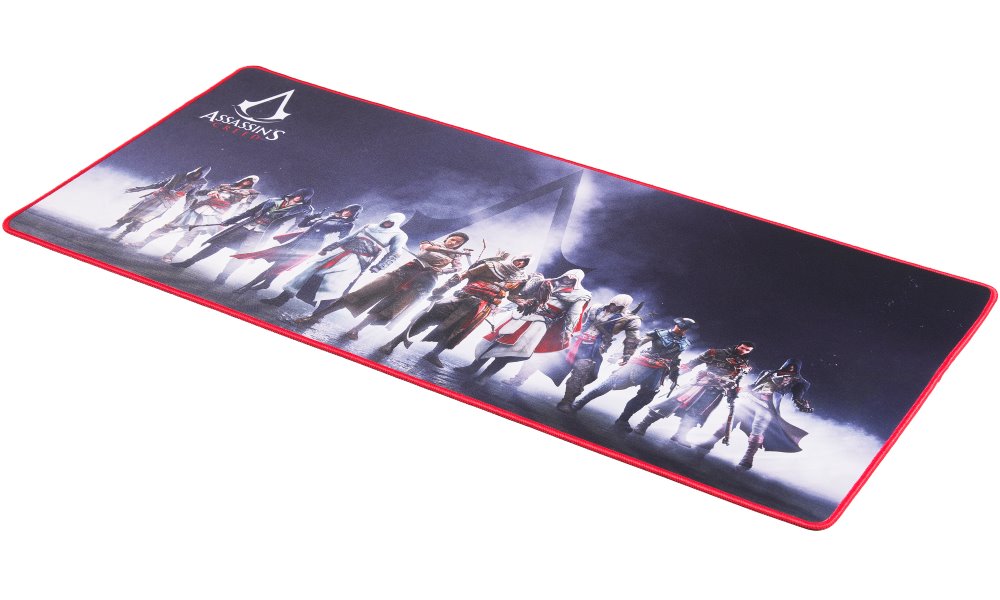 Velká podložka pod myš a klávesnici pro fanoušky série Assassin's Creed. S přilnavým gumovým podkladem je podložka bezpečně přichycena ke stolu, kde zůstává za všech okolností.