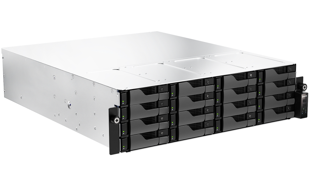 Profesionální 16-bay rackmount NAS server s AMD Ryzen 7 Pro 7745 procesorem (8 jader/16 vláken), 16 GB ECC DDR5-4800 RAM, dual 10GbE + Gigabit Ethernet, PCIe 5.0 sloty, redundantní napájení 80 PLUS Platinum pro enterprise prostredí.Více info