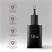 USB nabíječka do sítě AXAGON ACU-QC18 je určena pro nabíjení mobilních zařízení. Díky maximálnímu výkonu 18W dokáže nabíječka dobíjet telefony, tablety a další mobilní zařízení nejvyšší možnou rychlostí. Adaptér nabízí standardní USB-A konektor. Nabíječka je vybavena výstupem Quick Charge 3.0 USB typu A, což umožňuje rychlé nabíjení smartphonů a tabletů výkonem až 18W. Adaptér je také kompatibilní s dalšími standardy rychlého nabíjení telefonů, jako jsou Apple iPhone, iPad, Samsung, Huawei, Honor, Xiaomi, Motorola a dalších. Pokročilý systém ochran na výstupu nabíjecího adaptéru chrání nabíjené zařízení před poškozením. Funkce nabíječky také zajistí rozpoznání nabíjeného zařízení a zvolení optimální rychlosti a průběhu nabíjení. Tělo napájecího adaptéru má příjemný tvar a kompaktní velikost. Kombinace malých rozměrů a širokého rozsahu vstupního napětí dělá z této nabíječky ideálního pomocníka na cesty. Vstup: • vstupní napětí AC 100V-240V / 0.4A / 50-60 Hz (funkce WIV), podporuje více národních napájecích standardů • dvoukolíková euro vidlice - integrovaná v těle napáječe Výstup: • USB-A port QC (telefony) max. 18W: 5V/3A, 9V/2A, 12V/1.5A • Technologie nabíjení: QC 3.0, QC 2.0, AFC, FCP, SMART, Apple 2.4A Maximální výkon: • maximální výkon 18W • maximální proud 3A Podporované technologie nabíjení: • Standardní nabíjení všech zařízení s podporou 5V a nabíjení Apple iPhone 5, 6, SE, 7. • SMART - nabíjení max. 5V/3A, Quick Charge 1.0, USB Battery Charging 1.2 (DCP 1.5A) a Apple 2.4A (iPad). • FCP - rychlé nabíjení pomocí protokolu Huawei Fast Charge Protocol. • AFC - rychlé nabíjení pomocí protokolu Samsung Adaptive Fast Charging. • QC - rychlé nabíjení pomocí protokolu Qualcomm Quick Charge 2.0, Quick Charge 3.0. Nabíječka podporuje funkce WIV, AIC, CC: • Wide Input Voltage - funkce širokého rozsahu vstupního napětí, chrání adaptér proti podpětí a přepětí na vstupu a umožní použití více "národních napájecích standardů". • Automatic Intelligent Communication - funkce automatického rozpoznání připojeného zařízení pro zvolení optimálních parametrů nabíjení. • Constant output Current - funkce udržování konstantního proudu zabraňuje kolísání výstupního výkonu, tato funkce zajišťuje stabilní průběh nabíjení. Komplexní ochrana výstupu: OCP, OVP, OTP, OSP: • Over Current Protection. Ochrana výstupu proti proudovému přetížení. • Over Voltage Protection. Ochrana proti přepětí na výstupu. • Over Temperature Protection. Ochrana proti přehřátí adaptéru. • Output Short Circuit protection. Ochrana proti zkratu na výstupu. Další vlastnosti: • rozměry těla napáječe 79 x 42 x 27 mm včetně vidlice, • hmotnost: 47 g, • materiál: nehořlavý plast. Balení v kartonové krabičce s otvorem pro zavěšení obsahuje: • černá nabíječka do sítě, • vícejazyčný návod CZ/DE/DK/ENG/ESP/FIN/FR/GR/HR/HU/IT/NL/PL/PT/RO/RU/SK/SWE/BG/CN/TR/ARA.