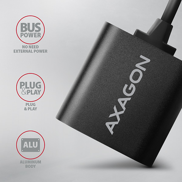 (Registrace)AXAGON ADA-12, USB 2.0 - externí zvuková karta, 48kHz/16-bit stereo, kovová, kabel USB-A 15 cm