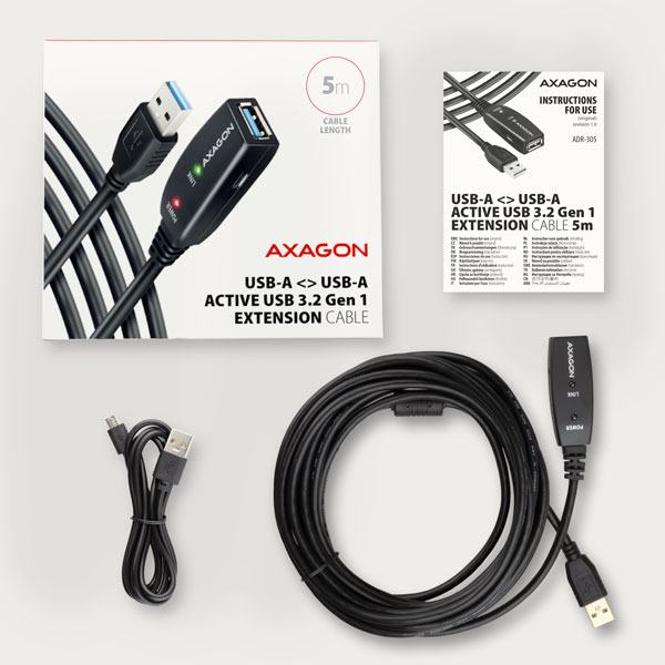 (Registrace)AXAGON ADR-305, USB 3.2 Gen 1 A-M -> A-F aktivní prodlužovací / repeater kabel, 5m
