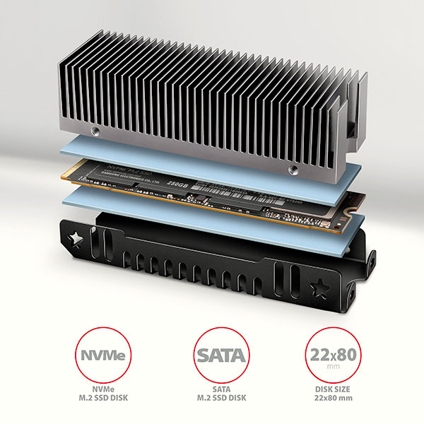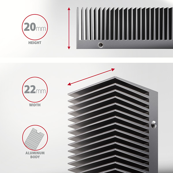 (Registrace)AXAGON CLR-M2XT, hliníkový pasivní chladič pro jedno i oboustranný M.2 SSD disk, výška 24 mm