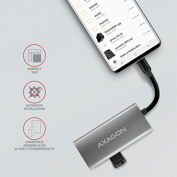 (Registrace)AXAGON HMC-4G2, USB-C 3.2 Gen 2 10 Gb/s hub, porty 2x USB-A + 2x USB-C, kabel USB-C 13cm