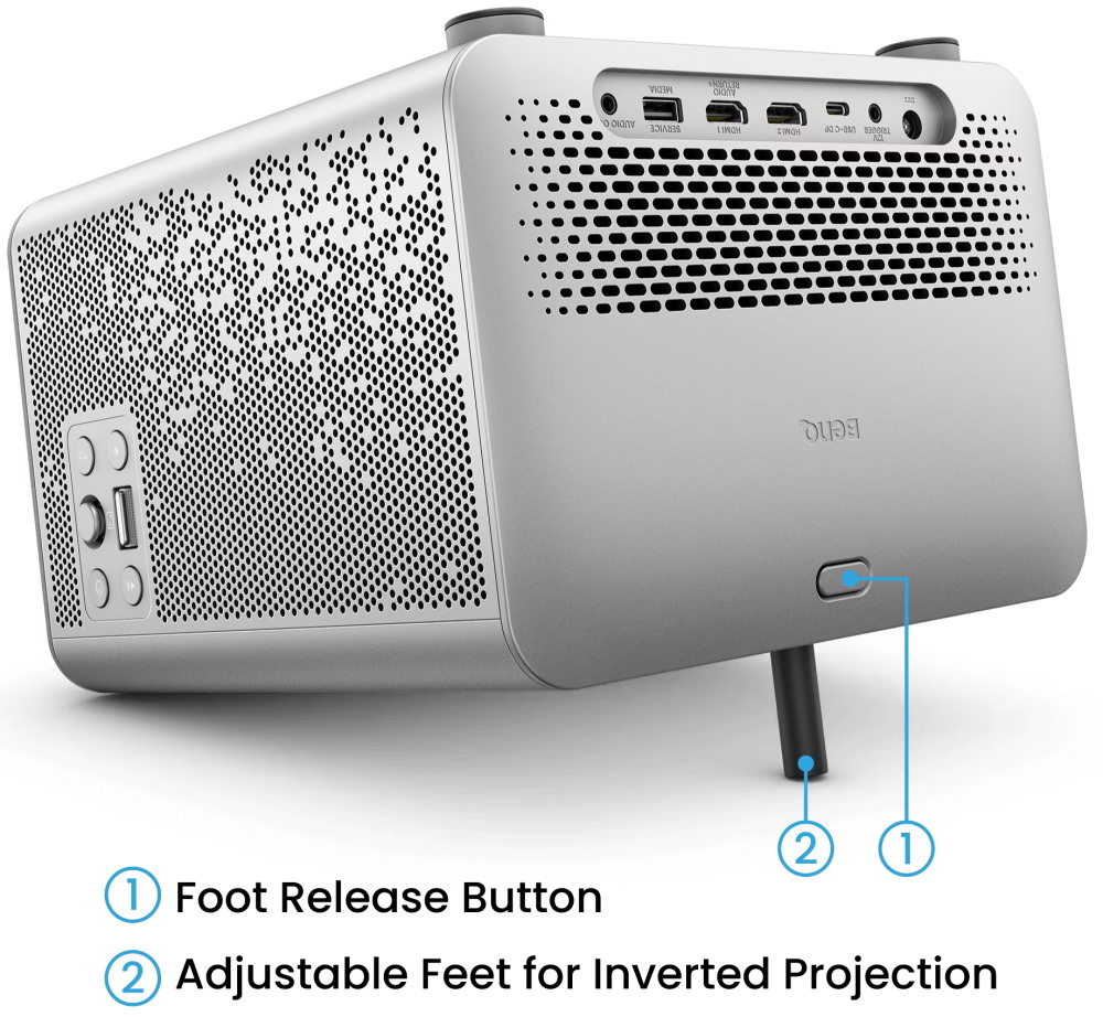 Kompletní konektivita zahrnuje 2× HDMI 2.1, USB-C s PD 30 W, USB-A 2.0, 3,5 mm audio výstup a 12V trigger. Podporuje rozlišení od VGA až po 4K UHD při frekvencích 23–60 Hz.