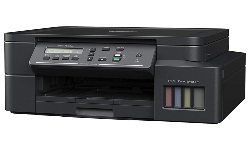 Barevná multifunkční tiskárna Brother DCP-T520W kompaktních rozměrů, která kromě tisku zvládne také kopírování a skenování. Vyznačuje se systémem doplňovacích zásobníků inkoustu, takže dokáže tisknout velké objemy dokumentů při nízkých finančních nákladech na stránku. Svou rychlostí tisku až 17 stran za minutu je vhodná do osobní kanceláře i běžné domácnosti. Brother DCP-T520W podporuje bezdrátové připojení skrze Wi-Fi síť a snadnou obsluhu a mobilní tisk pomocí aplikace Brother iPrint&Scan.