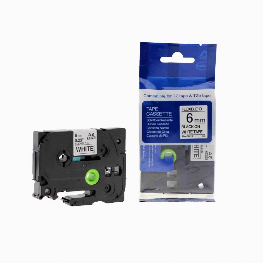 (Registrace)Brother - kompatibilní TZe-FX211, 6mm x 8m, flexibilní, černý tisk / bílý podklad