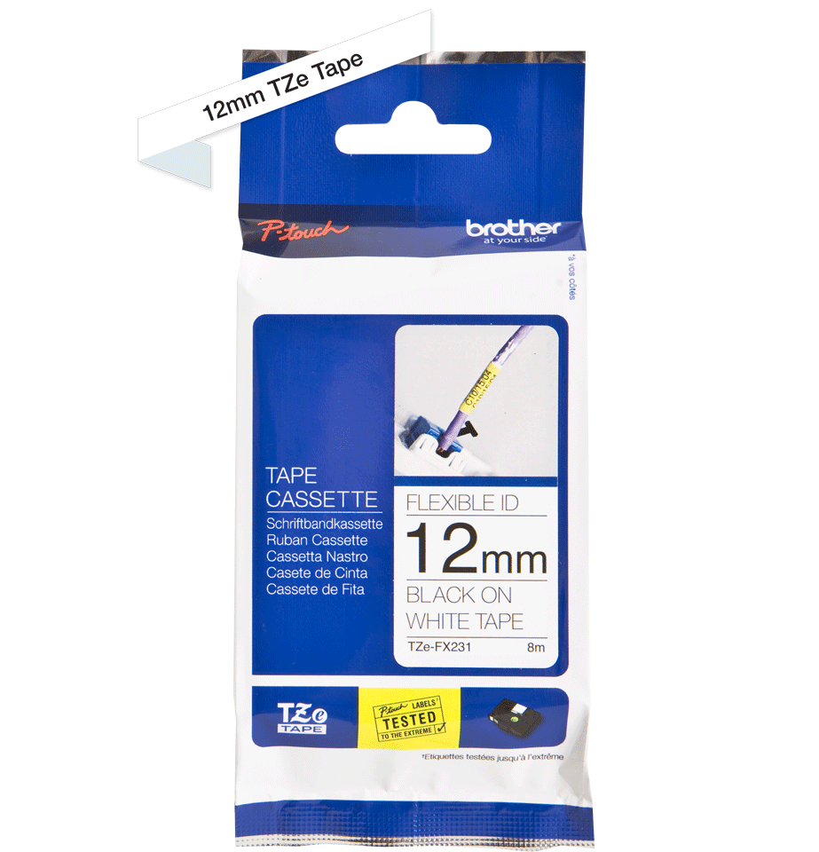 TZEFX231 je originální pásková kazeta pro tisk štítků značky Brother. Barva: černý tisk na bílém podkladu.