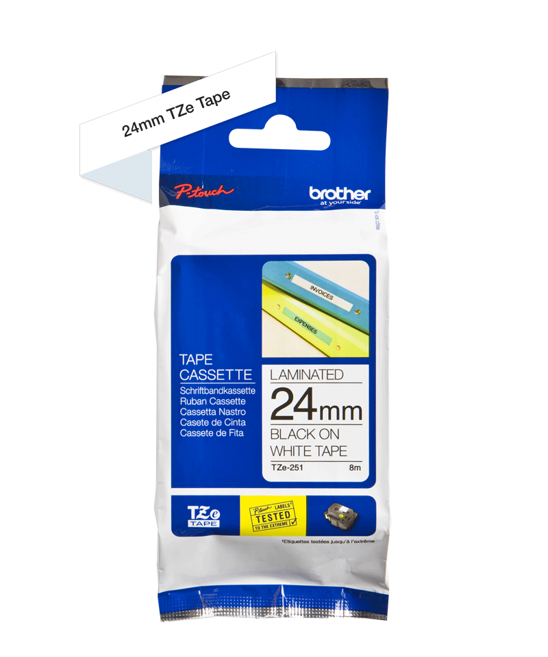 TZE251 je originální kazeta s páskou značky Brother. Barva: černý tisk na bílém podkladu. Kompatibilní s širokou řadou tiskáren Brother P-touch. Kazeta je ideální pro užití jak v domácnosti, tak kancelářích. Páska může být použita na identifikaci obsah...Více info
