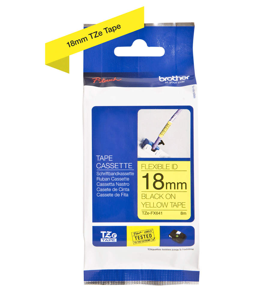 TZEFX641 je originální pásková kazeta pro tisk štítků značky Brother. Barva: černý tisk na žlutém podkladu.