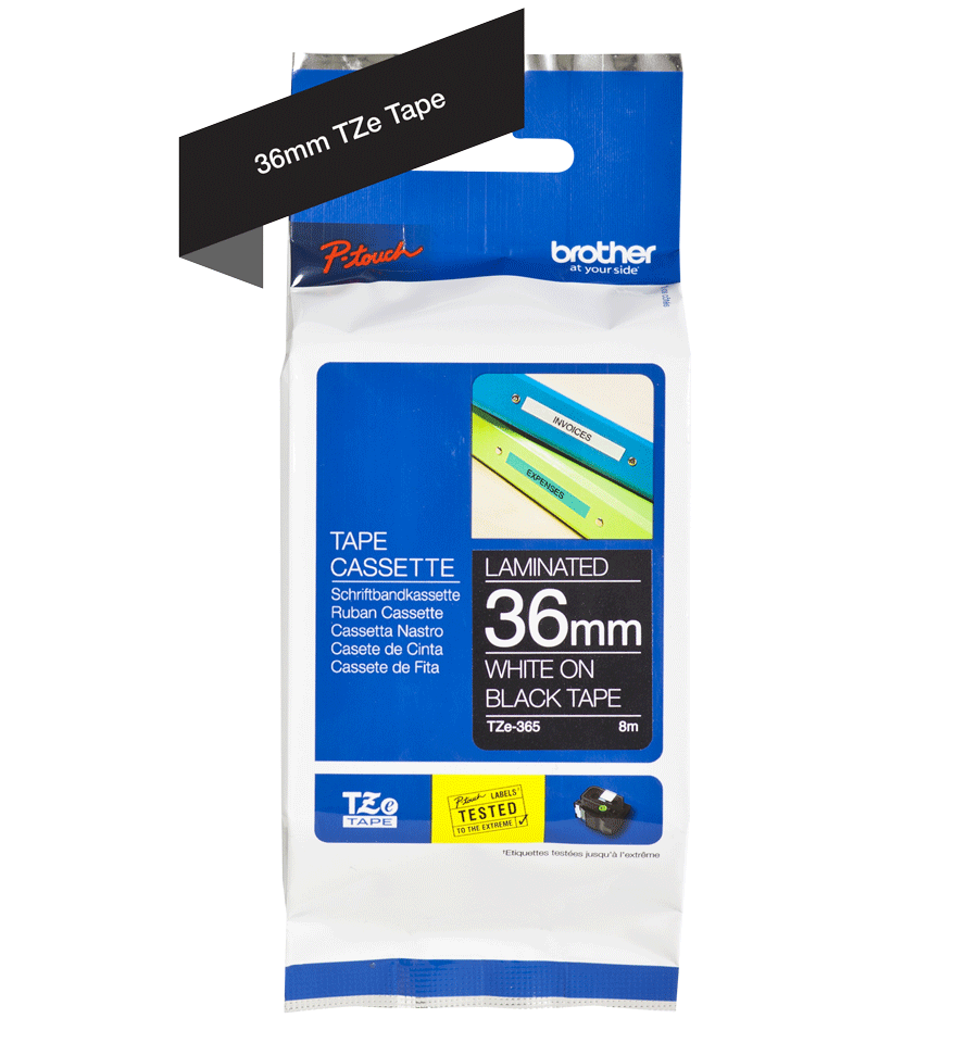 TZE365 je originální pásková kazeta pro tisk štítků značky Brother. Barva: bílý tisk na černém podkladu.