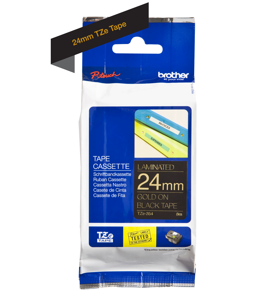 Brother - Originální pásková kazeta pro tisk štítků,TZE354, zlatá na černém podkladu, šířka 24 mm