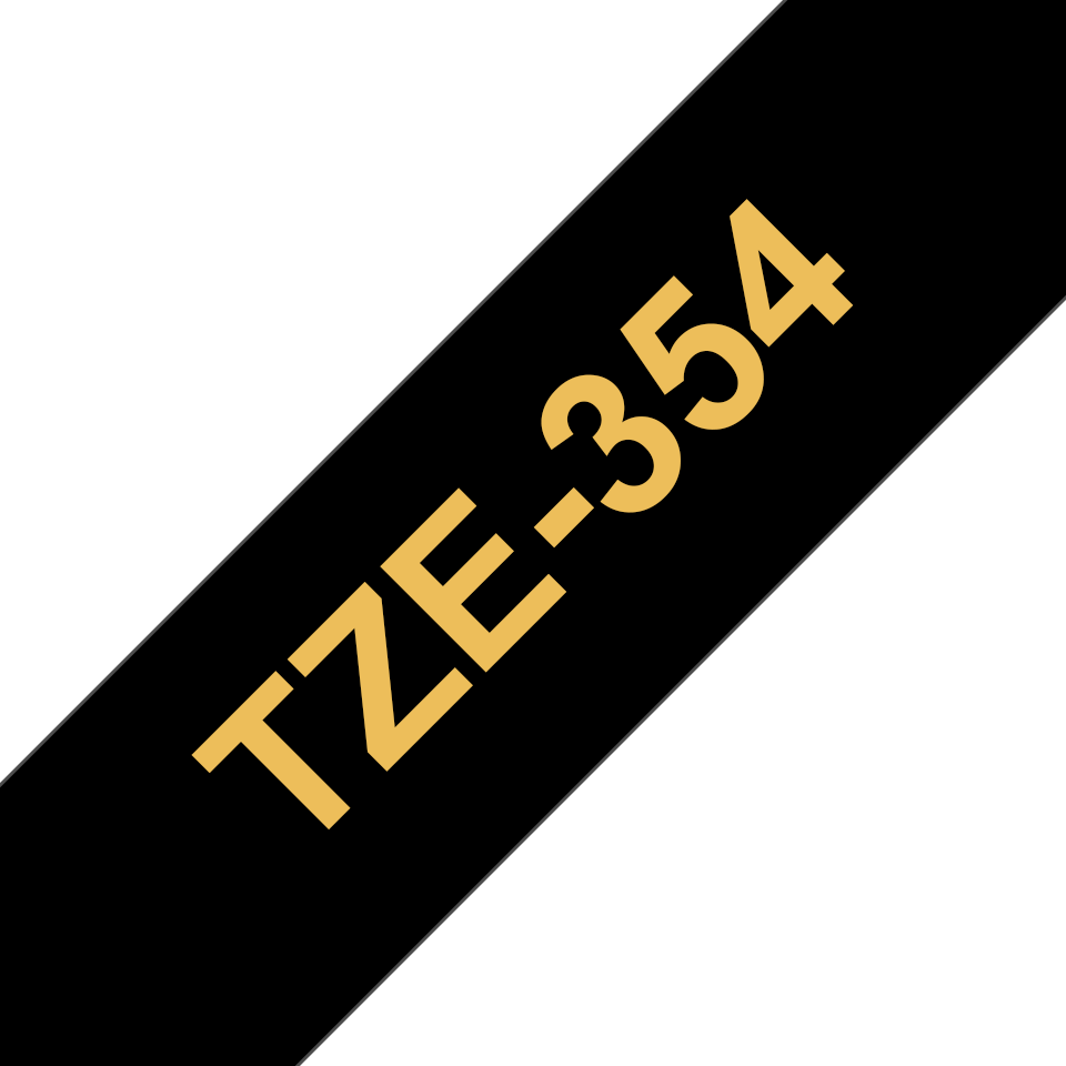 TZE354 je originální pásková kazeta pro tisk štítků značky Brother. Barva: zlatý tisk na černém podkladu.