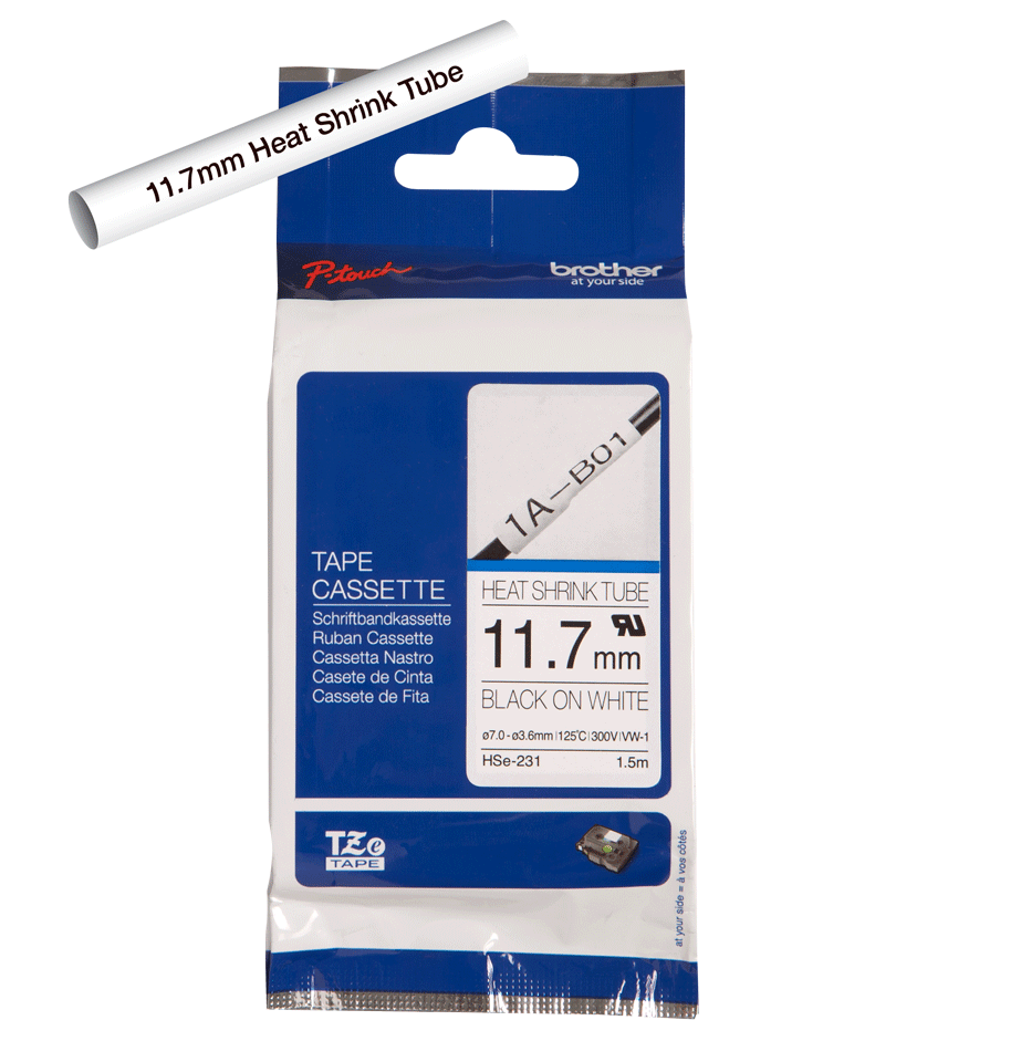 Brother - Originální pásková kazeta s tepelně smršťovací trubičkou, HSE231, černá na bílém podkladu, šířka 11,7 mm