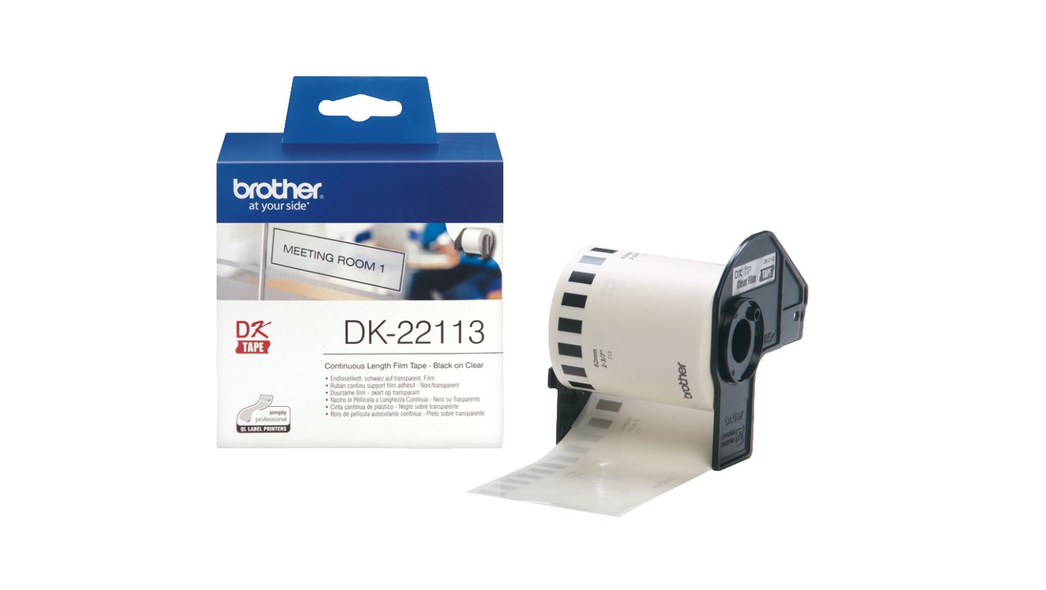 DK22113 je originální průsvitná filmová role pro černý potisk značky Brother. Tato filmová role je ideální pro vytváření dočasných poznámek v různých tvarech a velikostech.