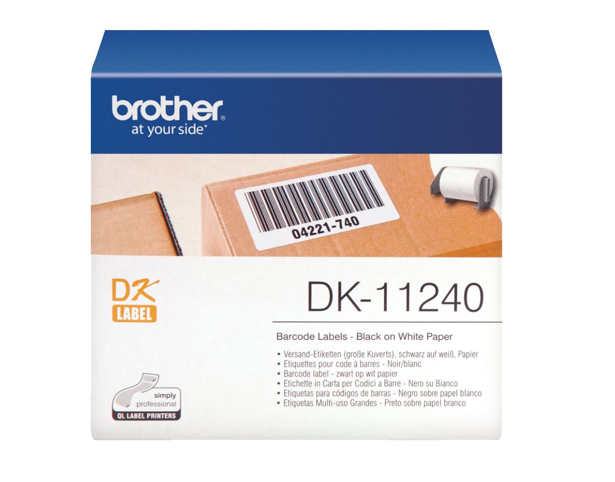 DK11240 je originální štítek značky Brother. Barva: černá na bílém podkladu. Štítky lze použít k mnoha účelů a to jak v domácnosti, tak v kancelářském prostředí. Štítky lze použít k tisku čárových kódů, vizitek nebo informací o přepravě. Důležité infor...Více info