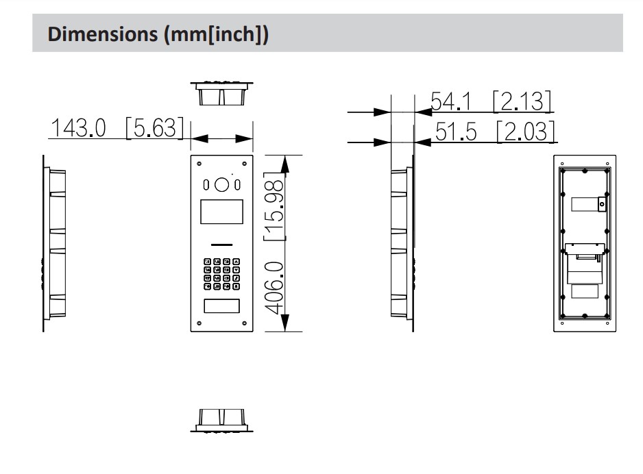 Dveřní stanice pro multiúčastnickou instalaci s 4,3" LCD panelem a kovovou klávesnicí s číslovkami v Braillově písmu. Barevná kamera s IR přísvitem, CMOS 2 Mpx 1/2,8", True WDR 120 dB, mikrofon a reproduktor, audio vstup, 1x alarm vstup, 1x alarm výstup, 1x Wiegand vstup/výstup (konfigurovatelné), 1x RS-485, napájecí výstup 12 V (200 mA), alarm proti neoprávněnému zásahu (Tamper Alarm). Odemknutí pomocí kódu, QR kódu, Mifare - RFID karty (13,56 MHz) nebo vzdáleně (aplikace).
