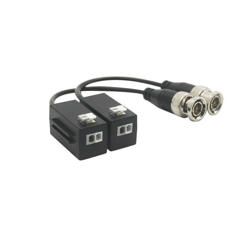 Balun převodníky (2ks) z BNC HDCVI/AHD/TVI/Analog na TP (UTP cat. 5e/6/100 Ohm), miniaturní provedení, pasivní, dosah 200 m pro 8 Mpix, 250 m pro 2 Mpix, přepěťová ochrana, přímé nasazení na výst. BNC konektoru kamery.