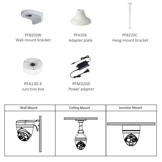 Protokoly: HTTPS, HTTP, TCP, ARP, RTSP, RTP, UDP, RTCP, SMTP, FTP, DHCP, DNS, DDNS, PPPOE, IPv4/v6, SNMP, QoS, UPnP, NTP