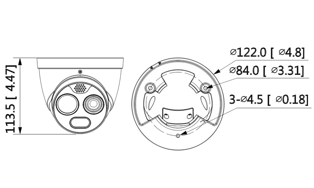Bezpečnostní termální venkovní IP kamera s duálním snímáním v termo (256 x 192) a vizuální (4 Mpx) oblasti. Rozlišovací schopnost pod 50 mK, objektiv f = 3,5 mm (50,6°), vizuální f = 4 mm (71,2°), IR přísvit do 30 m, 16x digitální zoom, funkce Digital Detail Enhancement (DDE), Dome/Eyeball provedení.