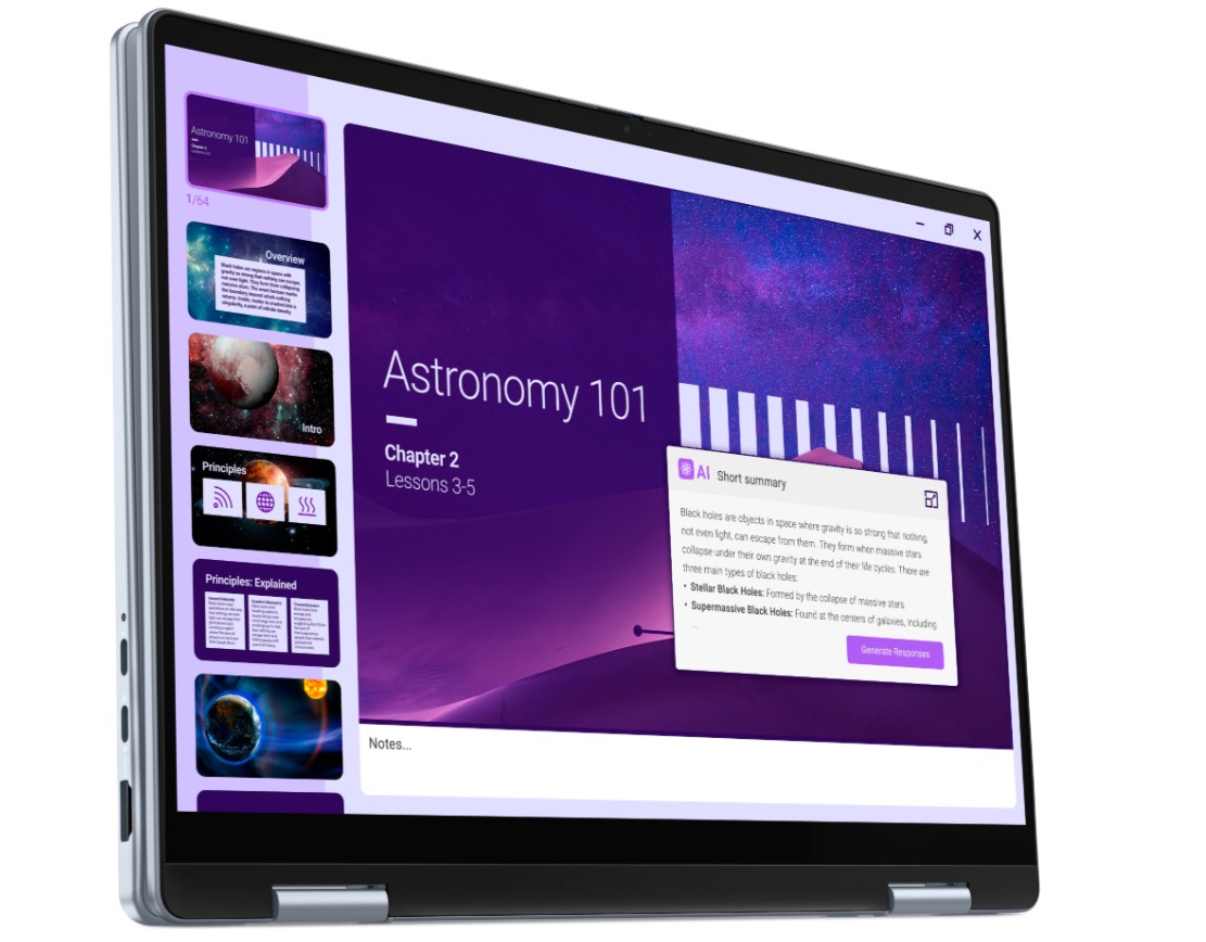 Technické parametry * Procesor: Intel® Core™ Ultra 7 256V (8 jader, 8 vláken, 2,2 - 5,0 GHz, 12 MB cache) * Paměť: 16 GB: LPDDR5x, 8533 MT/s (onboard) * Operační systém: Windows 11 Home * Kapacita disku: 1TB SSD PCIe M.2 * Displej: 14.0", FHD+ 1920x1200, 60Hz, IPS, Dotykový, lesklý povrch, 300 nit, 45% NTSC * Grafická karta: Intel Arc Graphics * Webkamera: BAREVNÁ S ROZLIŠENÍM FHD 2,07 MP + mikrofon * Připojení: Intel® Wi-Fi 7 BE201, 2x2, 802.11ax, Bluetooth® 5.4 bezdrátová karta * Baterie a napájení: 4článková lithium-iontová baterie (64 Wh), Adaptér 65 W (USB-C) * Barva: Stříbrná (Ice Blue) Výbava a příslušenství * Klávesnice: Podsvícená klávesnice Česká/Slovenská - Bez numerické klávesnice * Smart Card Reader s NFC: Ne * Čtečka otisku prstu: Ano * Thunderbolt 4: Ano * Ethernetový port RJ-45: Ne Konektivita * 1x port náhlavní soupravy (kombinace sluchátek a mikrofonu) * 1x port Thunderbolt 4 (40 Gb/s) s funkcí Power Delivery a rozhraním DisplayPort 2.1 * 1x port USB Type-C 3.2 2. generace (10 Gb/s) s funkcí napájení a rozhraním DisplayPort 1.4 * 1x port HDMI 2.1 Rozměry a hmotnost * Rozměry: Výška: 14,00 - 14,95 mm, Šířka: 314,00 mm, Hloubka: 226,15 mm * Hmotnost: 1,61 kg Záruka 1 rok Basic Next Business Day On-Site Service Odkaz na stránky výrobce https://www.dell.com/en-us/shop/dell-laptops/dell-14-plus-2-in-1-laptop/spd/dell-db04250-2-in-1-laptop
