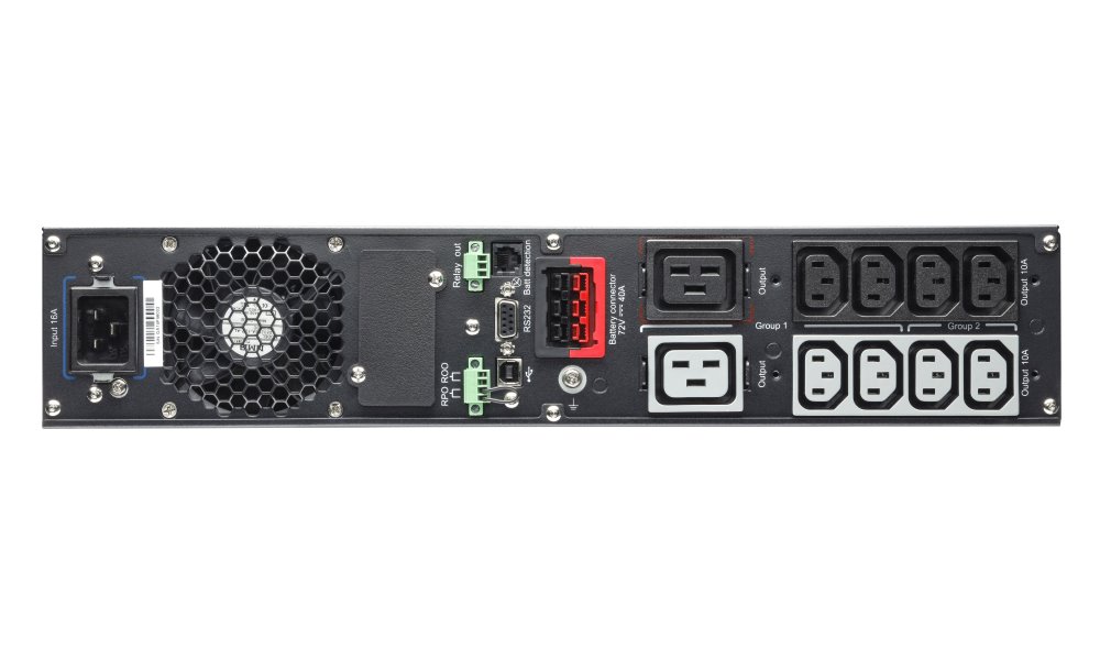 Výstupní zásuvky: 8× IEC-320-C13, 2× IEC-320-C19Tolerance výstupního napětí z baterie: -2 % až +2 %