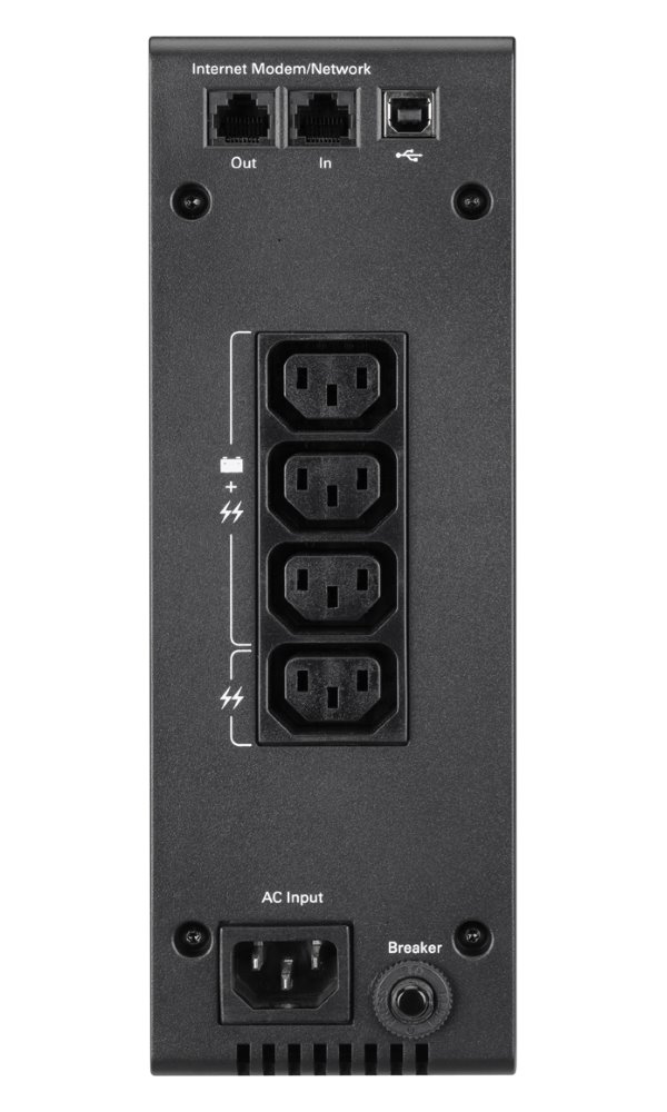 Výstupní zásuvky: 4× IEC-320-C13 (z toho 1× pouze přepětí)