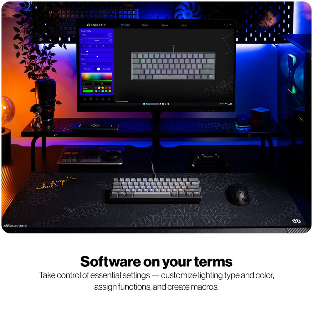 Kompaktní mechanická klávesnice s lineárními spínaci ENDORFY Red, hot-swap funkcí a trojvrstvou akustickou penou. 60 kláves v US ANSI rozložení, ARGB podsvícení, hliníková horní deska, dedikovaný software pro prizpusobení.Více info