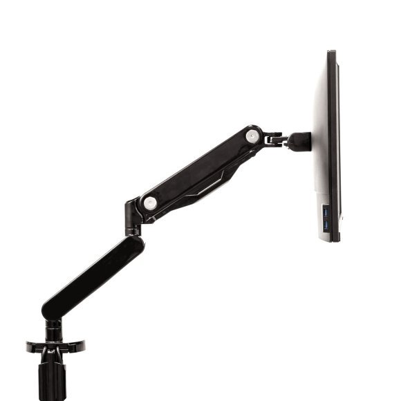 • nezávislé nastavitelné rameno pro 1 monitor • usnadňuje organizaci pracovního prostoru • moderní design • technologie plynových pružin umožňuje snadné nastavení monitoru pro práci a sdílení obrazovky • konektory USB 3.0 umožňují snadné připojení oblíbených zařízení • intuitivní systém správy kabeláže minimalizuje nepořádek • max. 360 ° otáčení obrazovky, max. sklon (pravý, levý) 180 ° • max. stoupání (nahoru, dolů) + 85 ° / –15 ° • max. výška 39 cm, dosah 50 cm • montážní systém VESA, splňuje normy VESA 75 × 75 a 100 × 100 • snadná montáž ke stolu pomocí svorky nebo průvlaku ( svorka 2–12 cm, průvlak 2–10 cm ) • barva černá • materiál kov • hmotnost 5,4 kg • doporučeno Mezinárodní akademií pro ergonomické produkty FIRA™