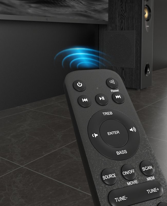 Bezdrátové připojení zajišťuje technologie Bluetooth 5.3, díky čemuž je tento model kompatibilní s celou řadou zařízení. Samozřejmostí je také drátová konektivita pomocí koaxiálního vstupu, optického vstupu nebo konektoru 3,5 mm jack. Nechybí ani funkce NFC či port USB. Součástí balení je rovněž dálkový ovladač.