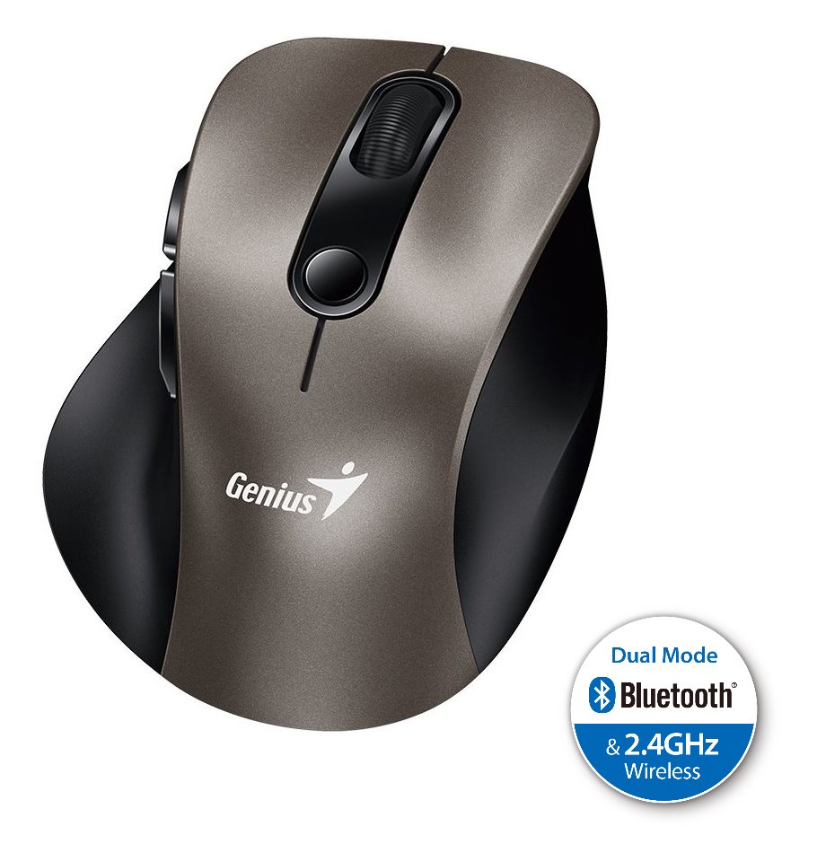 Bezdrátová myš GENIUS Ergo 9000S pro přesnou a plynulou práci na počítači. Vyznačuje se ergonomickým designem, díky čemuž pohodlně padne do ruky a snadno se drží. Je vybavena optickým senzorem s nastavitelným rozlišením až na hodnotu 2400 DPI, takže se optimálně přizpůsobí vašim požadavkům a s potřebnou citlivostí reaguje na každý pohyb kurzoru. Pro jednoduché nastavení rozlišení a ovládání je myš GENIUS Ergo 9000S vybavena 6 tlačítky. Hlavní předností je bezdrátové připojení pomocí Bluetooth nebo miniaturního USB přijímače.