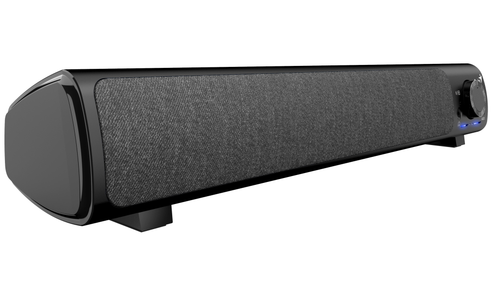 Bezdrátový Bluetooth soundbar s USB-A/C pripojením a 3,5mm AUX vstupem. Dva 2" full-range reproduktory, celkový výkon 4 W RMS, výstup na sluchátka, ovládací kolecko pro režim a hlasitost, kompaktní provedení pro notebooky a PC.Více info