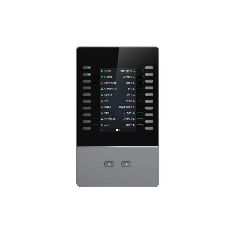 GBX20 je podsvícený LCD rozšiřující modul k IP telefonům GRP2615, GRP2624, GRP2650, GRP2670, GXV3350 a GXV3450. Modul obsahuje 20 dvoubarevných kláves a 2 klávesy se šipkami pro přepínání stránek. Na každém GBX20 můžete mít až 40 kontaktů/BLF (vidíte stav interní klapky). Při propojení až 4 GBX20, ke kompatibilním telefonům Grandstream, získáte celkem až 160 kontaktů/BLF.