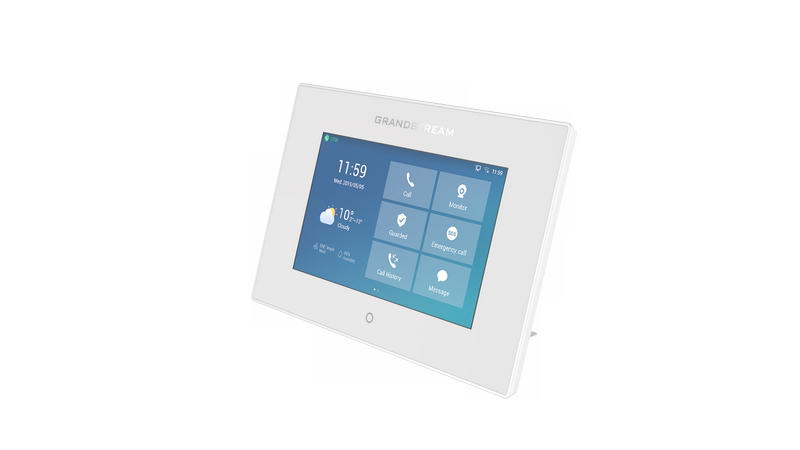 GSC3570 je vybaven 7“ dotykovým displejem a plně obousměrným HD zvukem. Poskytuje flexibilní síťové připojení prostřednictvím síťového portu 100Mbps s PoE nebo integrovanou dvoupásmovou Wi-Fi.