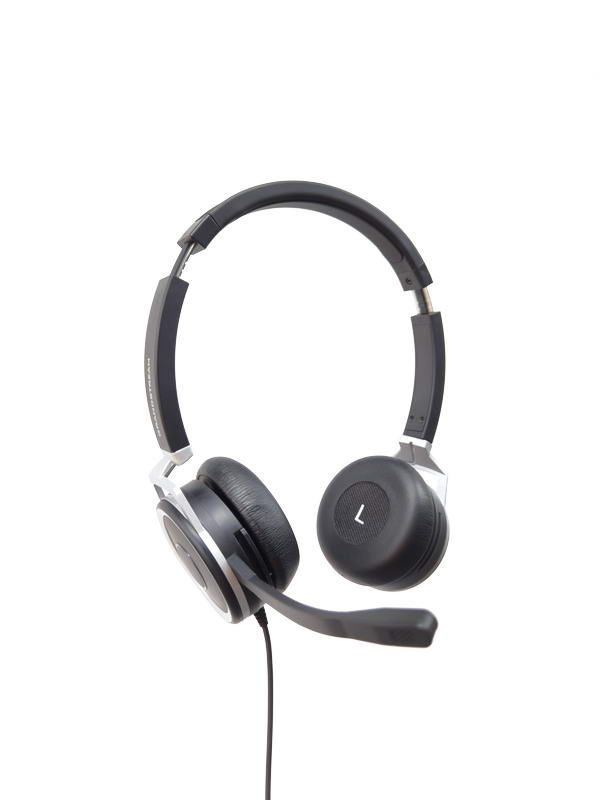 Nastavitelná kožená čelenka pro celodenní pohodlí; možné oboustranné nošení, mikrofon vlevo nebo vpravo