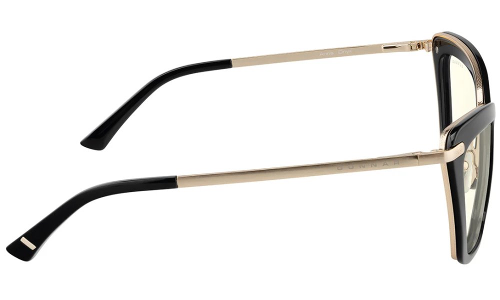 Počítačové brýle GUNNAR ANNA ONYX, které jsou vhodné pro kancelářskou práci i hraní her. Čirá skla disponují antireflexní vrstvou, která potlačuje nežádoucí odlesky a podporuje komfortní viditelnost obsahu na displeji monitoru či TV. Čirá skla blokují 35 % modrého světla a 100 % ultrafialového záření, čímž snižují námahu oči a efektivně chrání před negativními důsledky dlouhodobého sledování displeje, jako je únava nebo bolest hlavy.