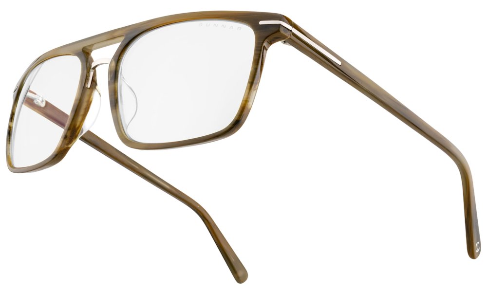 Brýle jsou vybaveny sedlovým mostem pro maximální pohodlí a minimalistickým kovovým prvkem, který elegantně propojuje přední část s nožičkami a zdůrazňuje nadčasový charakter designu. Patentovaná technologie čoček GUNNAR v kombinaci s povrchem G-Shield® Premium zajišťuje antireflexní vlastnosti a odolnost proti otiskům.