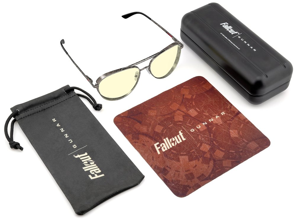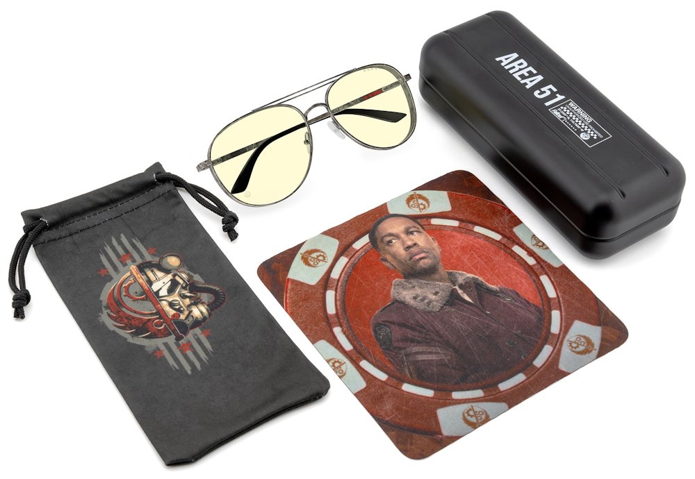 Každé brýle jsou dodávány s kolekcí exkluzivního příslušenství včetně kovového pouzdra „Area 51“, mikrovláknového pouzdra s motivy Brotherhood a čisticího hadříku s designem Fallout.