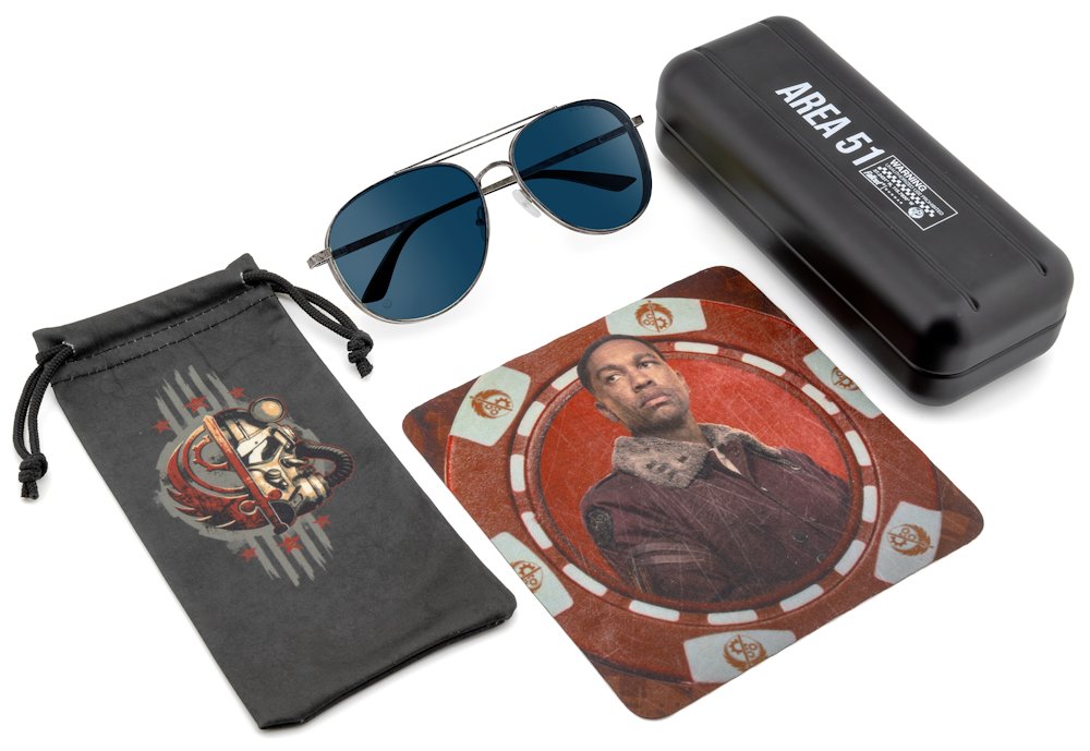 Každé brýle jsou dodávány s kolekcí exkluzivního příslušenství včetně kovového pouzdra „Area 51“, mikrovláknového pouzdra s motivy Brotherhood a čisticího hadříku s designem Fallout.
